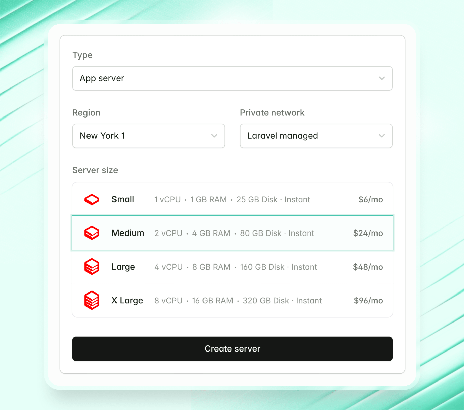 Laravel VPS is our most significant addition, transforming server provisioning from a minutes-long process into something that happens in under 10 seconds for almost every use case. This dramatic time reduction means you can go from idea to live server faster than ever before in a single click.