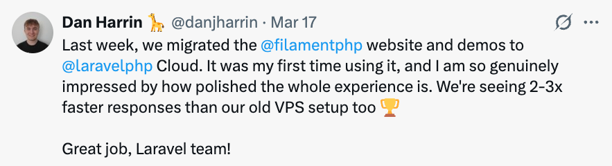 That is when he attended Laracon EU and spoke with members of the Laravel team. They offered support either by staying on the VPS or by moving to Laravel Cloud. Dan chose Cloud.