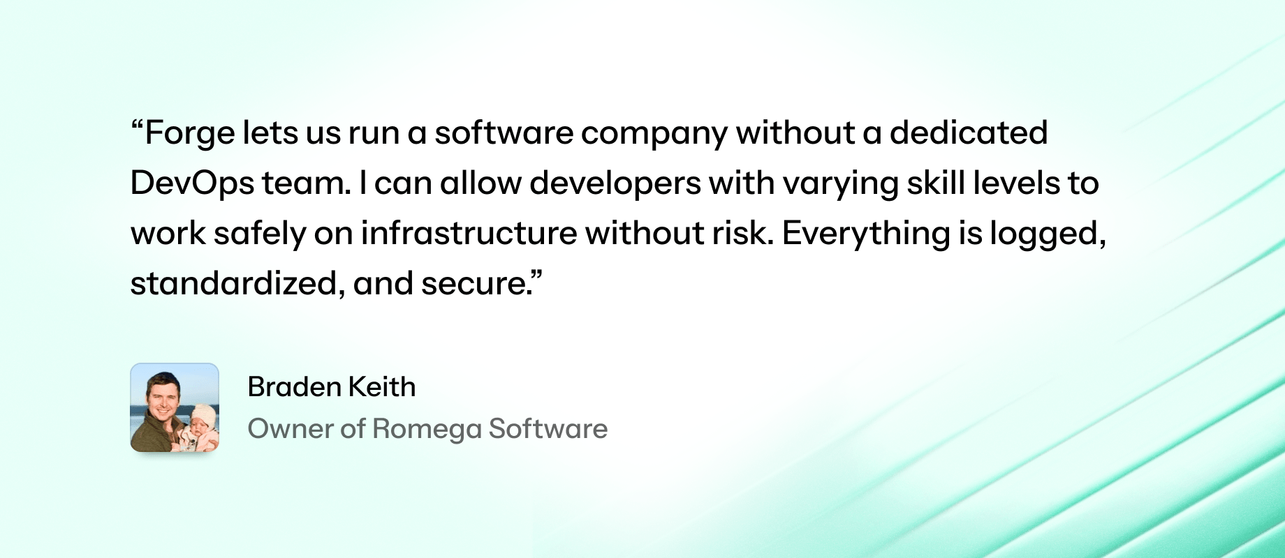 “Forge lets us run a software company without a dedicated DevOps team,” Braden said. “I can allow developers with varying skill levels to work safely on infrastructure without risk. Everything is logged, standardized, and secure.”