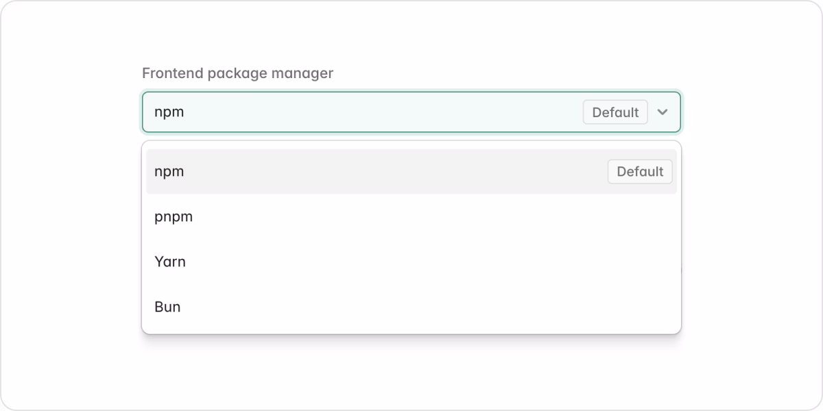 You can now choose your preferred JavaScript package manager when creating new sites, including npm, pnpm, Bun, or Yarn.
